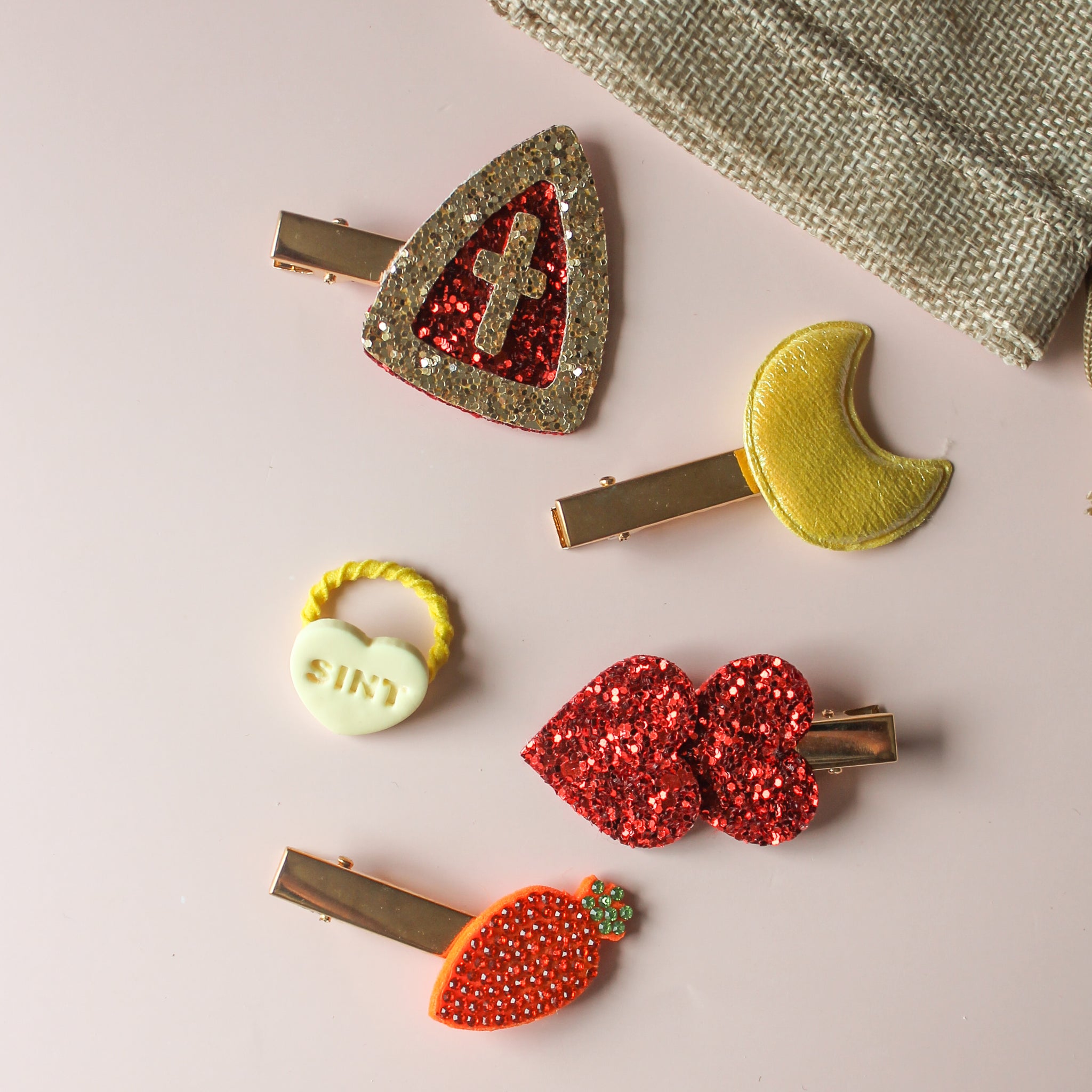 - Genoeg DIY materiaal om 4 haarspeldjes en een elastiekje te maken;